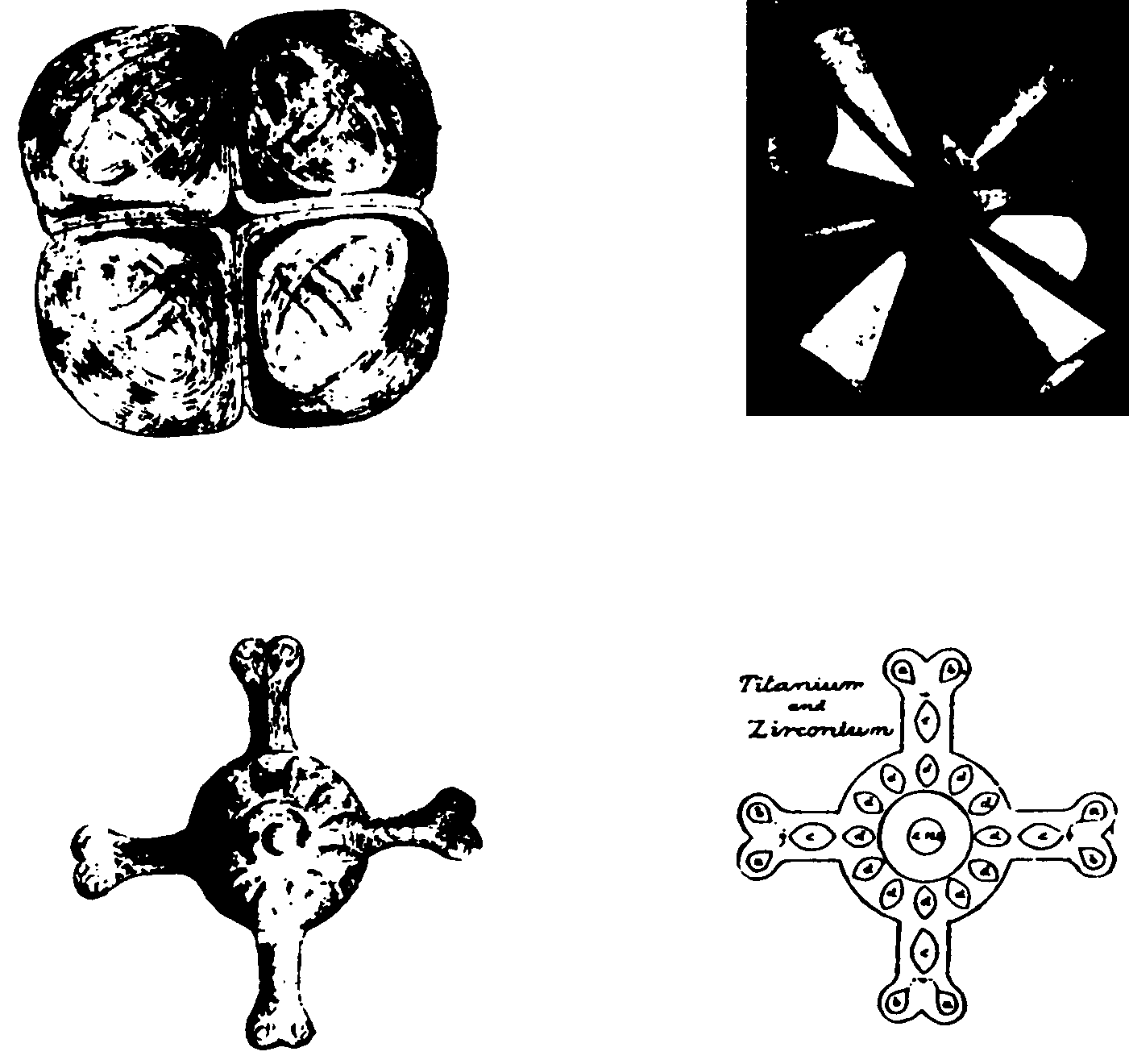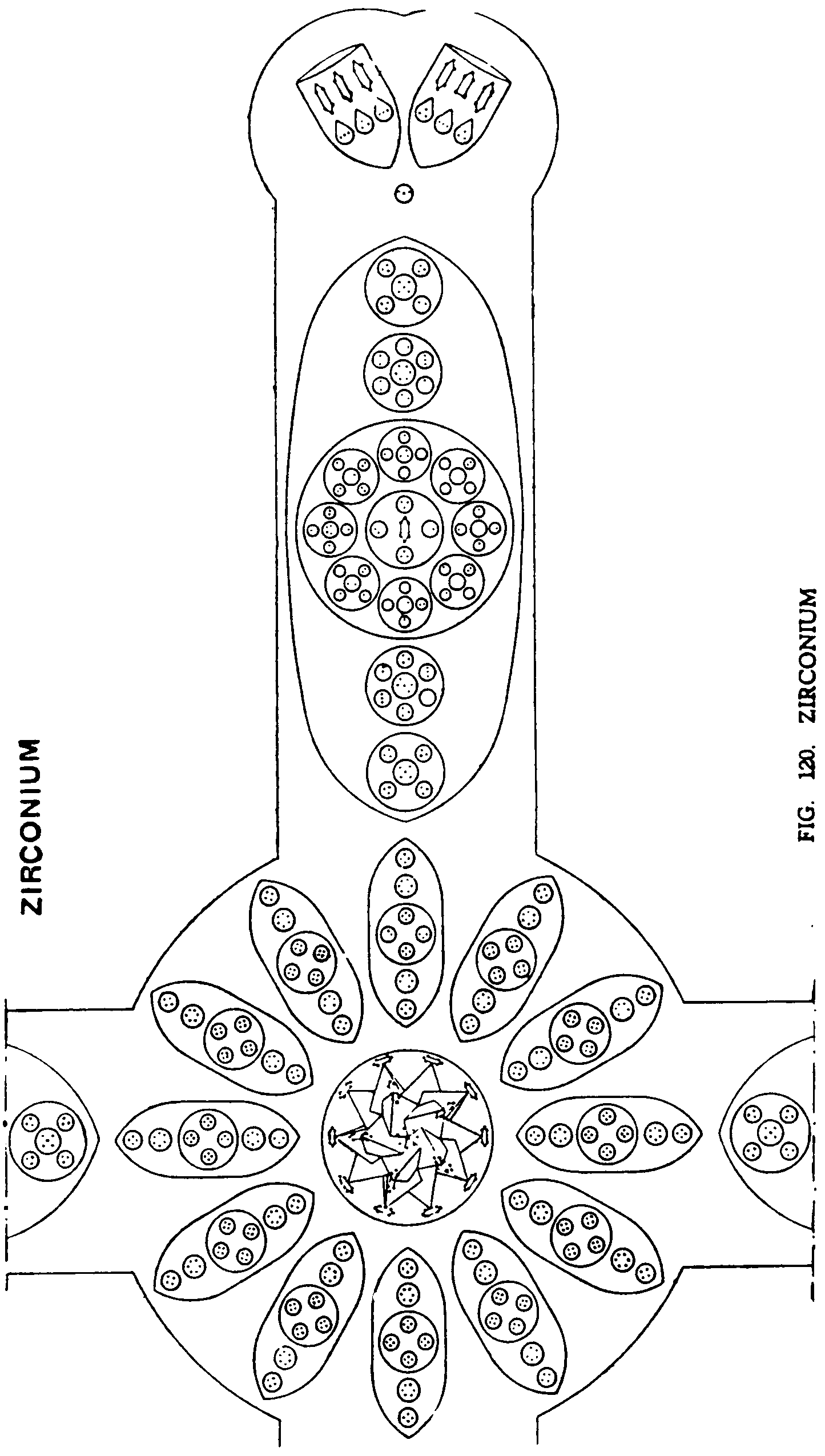 Zirconium has a similar design to Titanium, the Carbon atom being similarly distributed and the central body identical in pattern. Fig. 120.