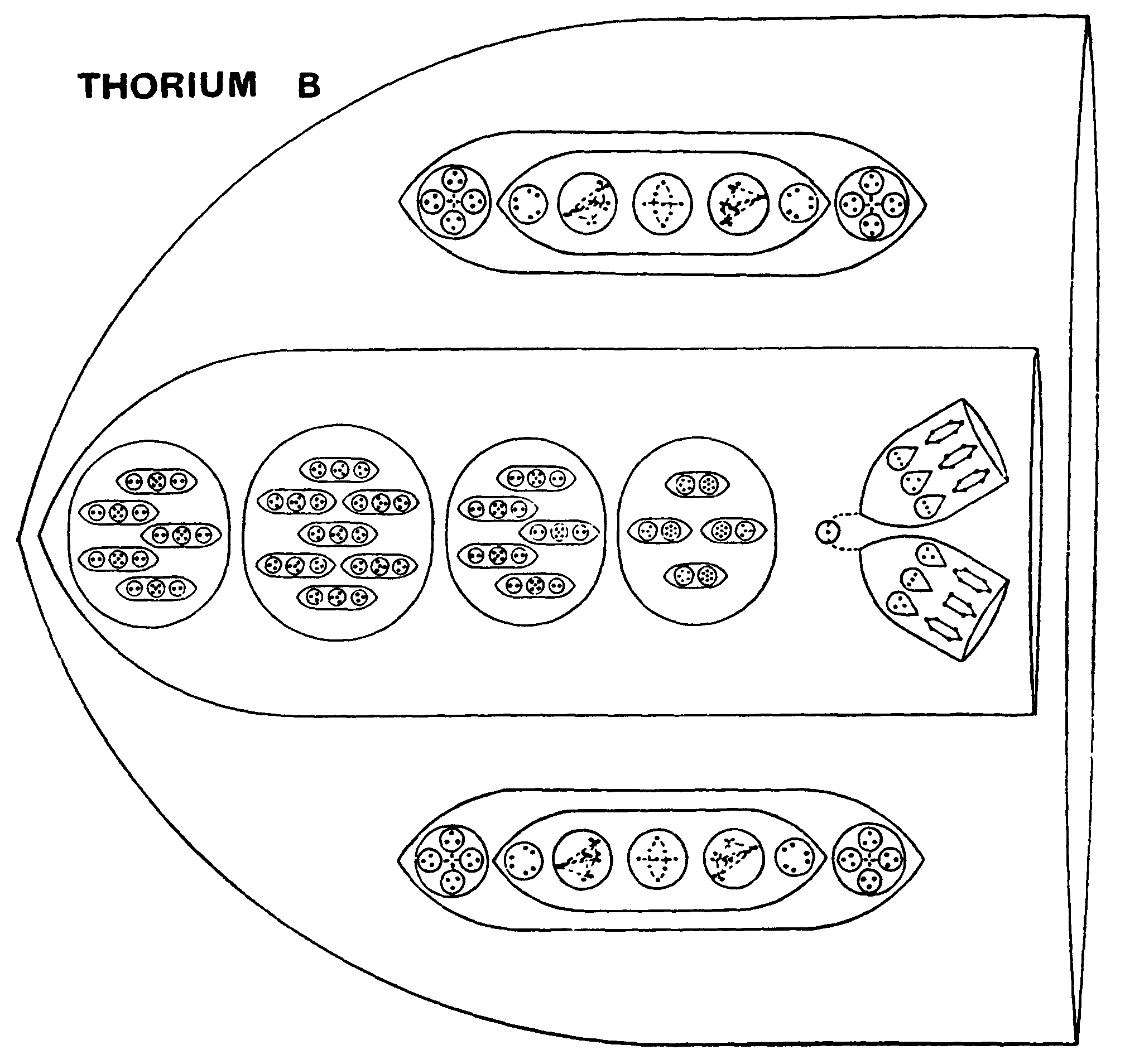 Round this centre comes a ring of twelve ovoids each holding within itself fourteen Anu, distributed among three contained spheres, two quartets and a sextet. This is a new device for crowding in material Fig. 119.