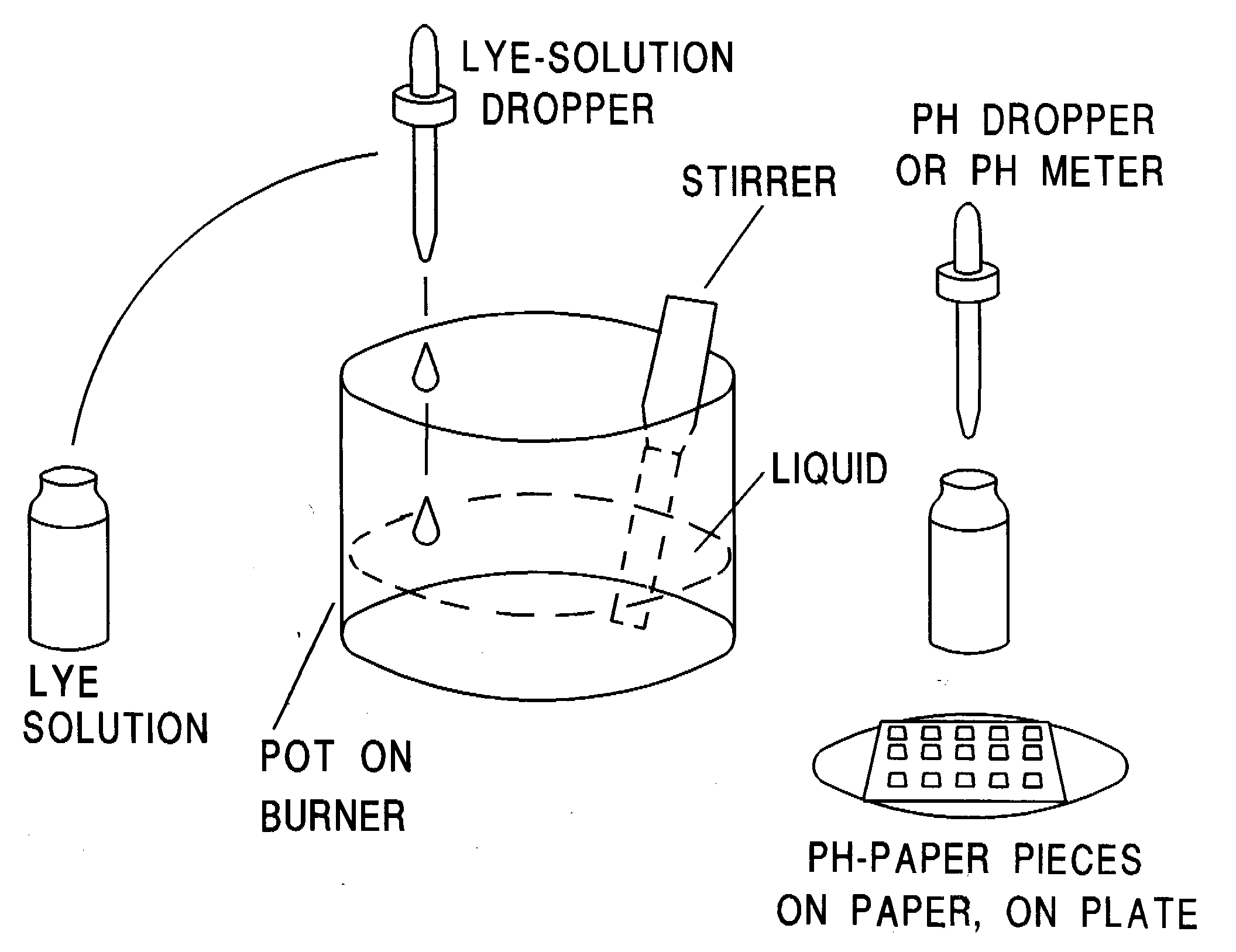 3. Pour the sea water into a stainless steel pot. Slowly, drop-by-drop, add the lye solution WHILE STIRRING. Every ten drops or so, test the pH. You might want to take at least 3 to 5 samples from different regions of the liquid. If you are using pH paper, the goal is to bring the pH up to 9.5, then stop to be on the safe side. If you are using a pH meter, stop just before you get to pH 10.78.