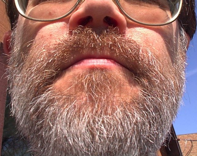 mustache as the white hair goes to blonde, red and finally to brown: