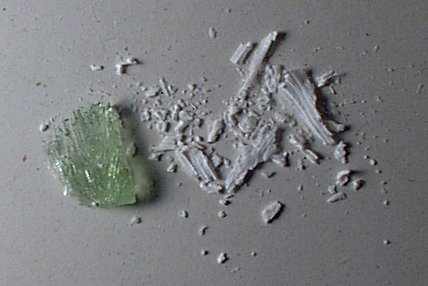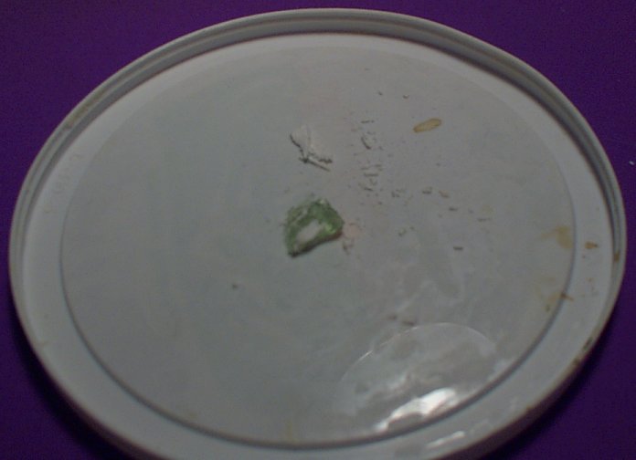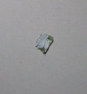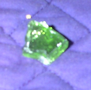 On Sept. 15th I put a speck of the white crust on my tongue and it seemed to dissolve. I also broke off a speck of the green glass and put it on my tongue. It also seemed to dissolve. I had a rather fitfull night's sleep with lots of remembered dreams the night after I tasted this.