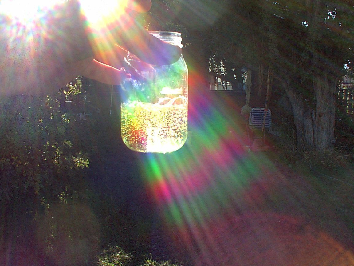 We broke off a small shard of this green glass, placed it in an about 20cc of undiluted muriatic (HCl) acid and added about 3ml of 35% hydrogen peroxide. After a few minutes it became clear that the shard was dissolving in the acid. Bubbles were forming on the surface of the shard and rising to the top of the liquid. I placed a magnet over the shot glass, that this process was happening in, so as to discourage any of the little ORMUS buggers from getting away. After about ten minutes the acid in the shot glass was getting a definite green tint.