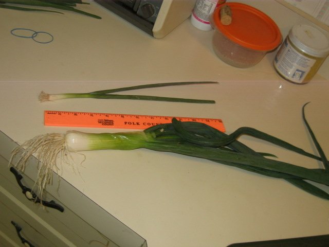 We just pulled the last of our "little" green bunching onions....
