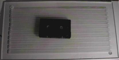 Flat plate with audio cassette for size comparison