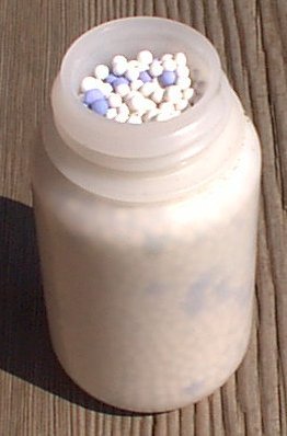 desiccant beads in the file cabinet with his samples. You can see some