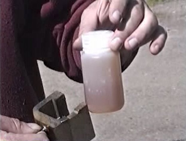 "While I was stirring in the TSP and lye solutions I noticed that I was feeling quite high. It was a bit like a pot high, but without the distortion and memory loss that pot gives. I also noticed my lips were getting quite sweet and slippery. I asked Jim about this. His reply was that this is quite common when working with these materials. To avoid it you should put some pure, lab grade, sodium chloride in with your working solution. Without the salt, the m-state material will evaporate with the water and much of it will be lost.