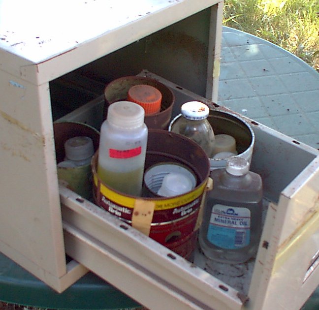 usually kept an unopened bottle of mineral oil in the file drawer. Over