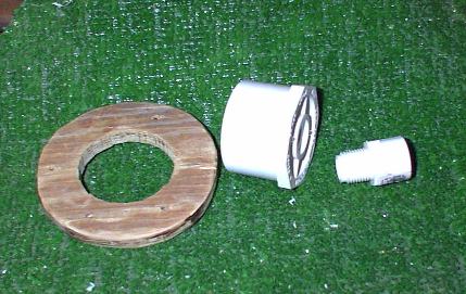 The base consists of the ring you just made, the 2 inch to 1/2 inch reducer and the threaded 1/2 inch male thread coupling. Use some Teflon tape on the threads and secure the 1/2 inch threaded fitting into the reducer. Then simply slide the mounting ring over the reducer down to the flats. A small amount of silicone sealant can be used if the fit is too loose. It is intended to be a very tight fit.