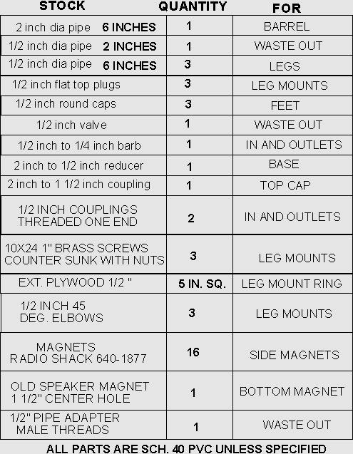 Now install the legs on the mounts. It is not necessary to glue them in place. The fittings will press snugly. 45 degree 1/2 inch elbows are recommended. The illustration below shows using straight couplings and bending the legs at an angle to provide a larger footprint and increase stability.