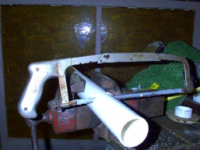 Secure the length of 2 inch diameter pipe into a vice or other holding device and cut a 6 inch piece off. Scribe a line all the way around to guide the cut if you are using a hand saw. This cut needs to be very smooth and straight.