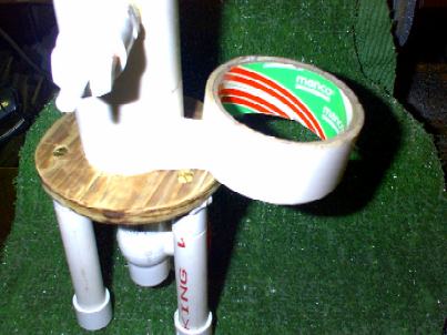 Notice it also covers up the messy (out-of-sight, out-of-mind) glue job!!! In addition, this further strengthens the glue joint and holds the leg mount ring in place. You only need one width of this tape. Cut off the roll at one complete warp and peel off the outer non sticky paper.