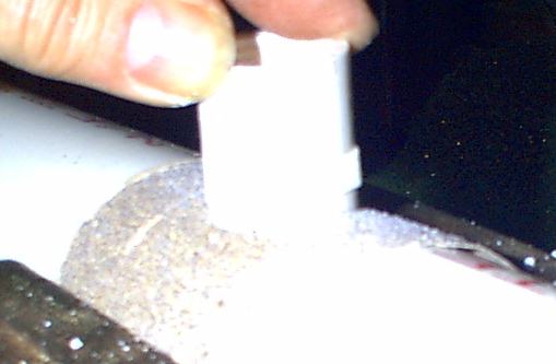 Next place some sand paper on the barrel and secure it. Sand the fittings until they are the same curve as the outside of the barrel.