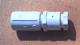 You build the nozzle portion of the inlet assembly by pushing the ½ inch male plug into the unthreaded end of the ½ inch PVC to male pipe thread adapter. Then you pound this plug into the adapter with the threaded end of the adapter against a block of wood so it will not be damaged.