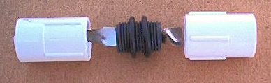 Take the 1½ inch piece of 1 inch PVC pipe and cut a single slot half way down one side using the hack saw. Cut two slots half way down from the other end oriented so that they don't intersect the single slot from the other end. Insert this piece of pipe into the center hole of the acrylic circle. Put the center hole of the smaller magnet over the two slot end of the pipe section. If it fits snugly, the magnet should be glued (using silicon sealer) to the short piece of 1 inch pipe.