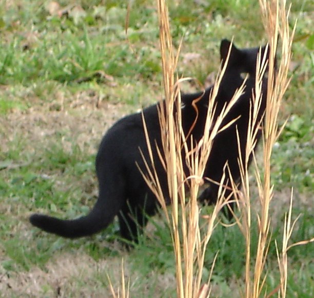 person, Dana, found him on Dana put him on the back porch that evening because his crying was keeping everyone awake. She left the outside door open a bit in case he had to get out. There was a big storm that night and part of the roof of an outbuilding collapsed. The next morning Tut was sitting on the back step but his tail was almost completely severed. Tut's tail came completely off in a day or so.